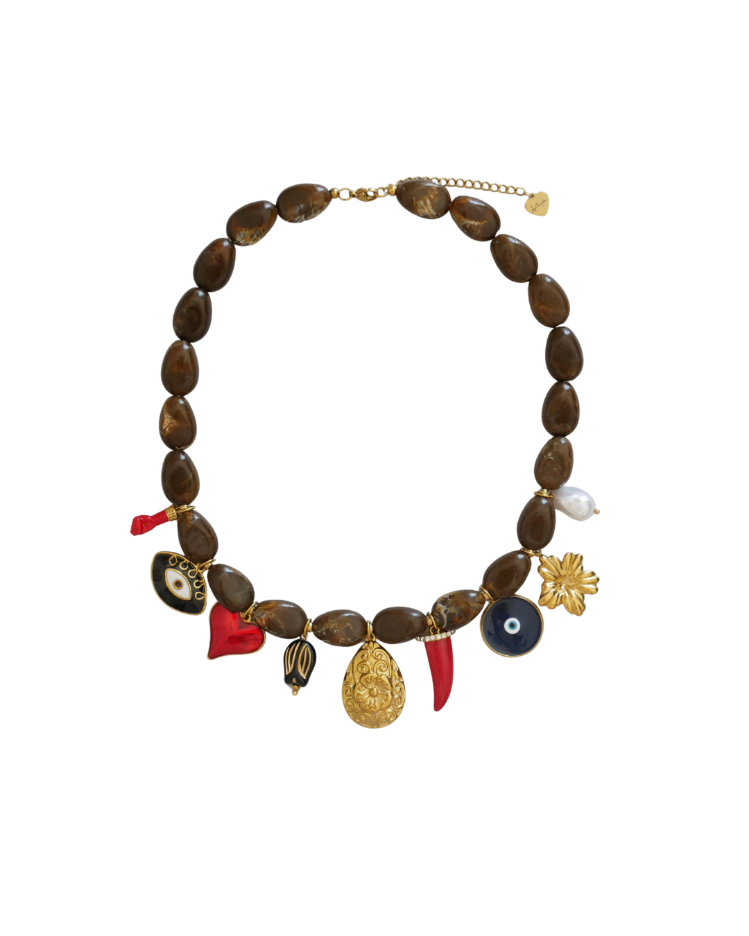 COLLAR VETTA MARRÓN (cordón ganchillo con rocalla)