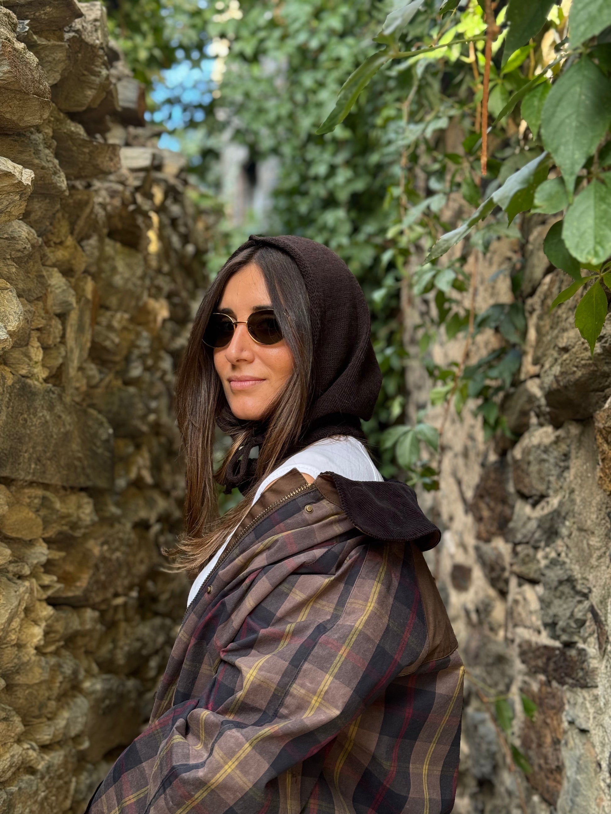La balaclava de punto marrón es cálida, práctica y con un aire sofisticado. Su tono tierra aporta un toque natural y acogedor que combina a la perfección con abrigos y chaquetas en tonos neutros o contrastados.