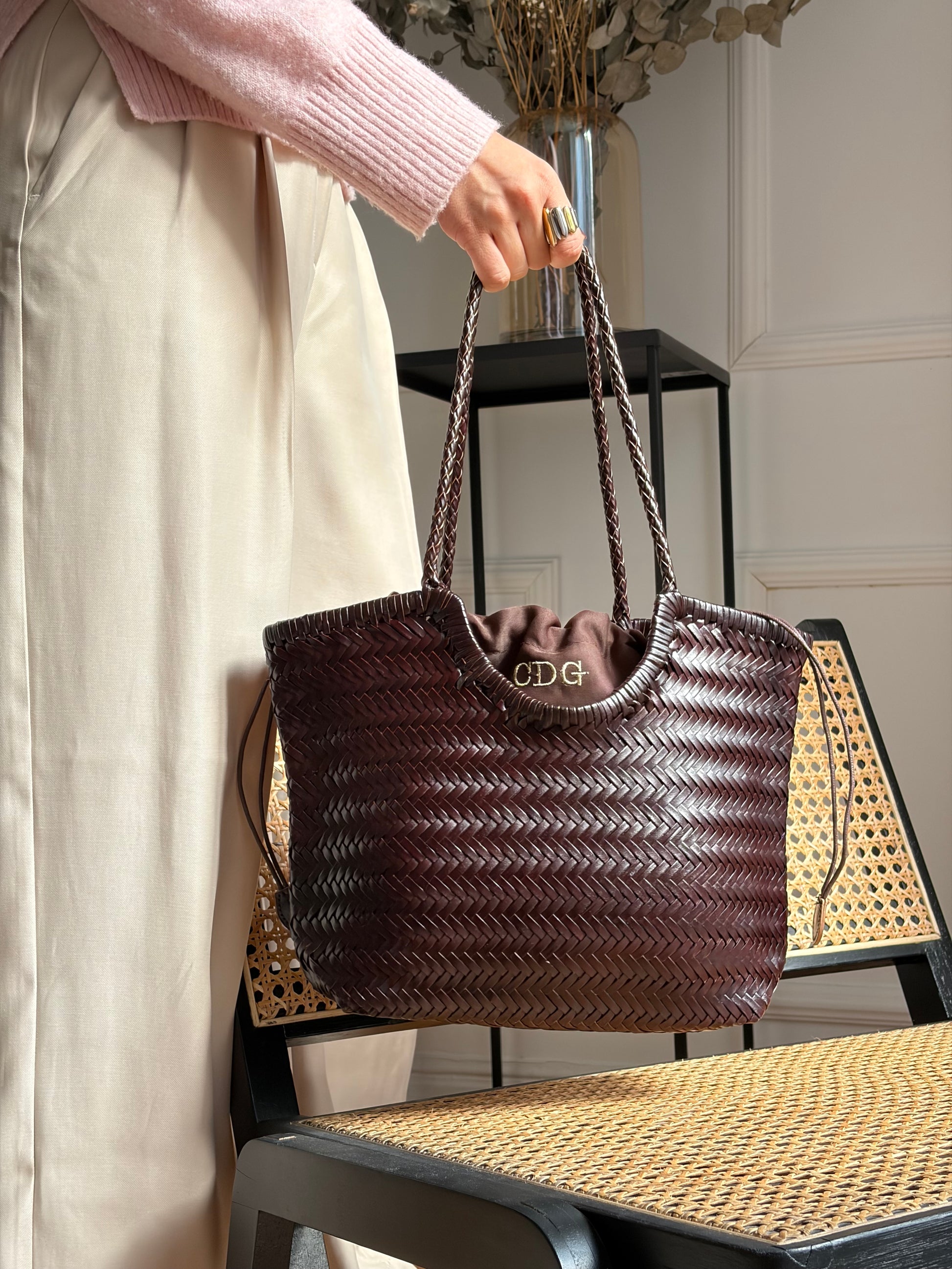 Un bolso artesanal elaborado en piel 100% de gran calidad. Cada pieza está tejida a mano, respetando el trabajo tradicional de la marroquinería y aportando un acabado único que no se obtiene en procesos industriales.