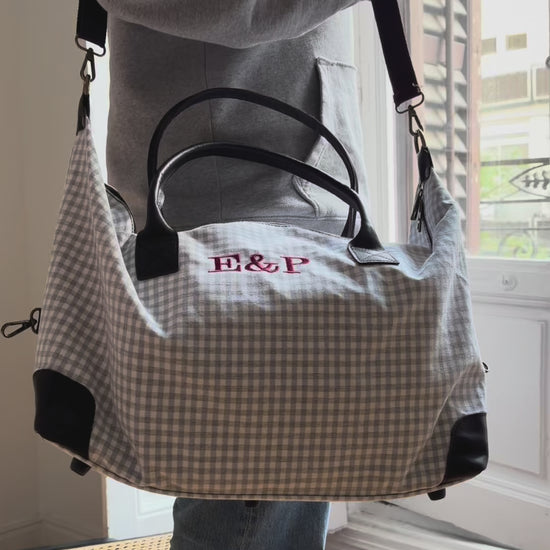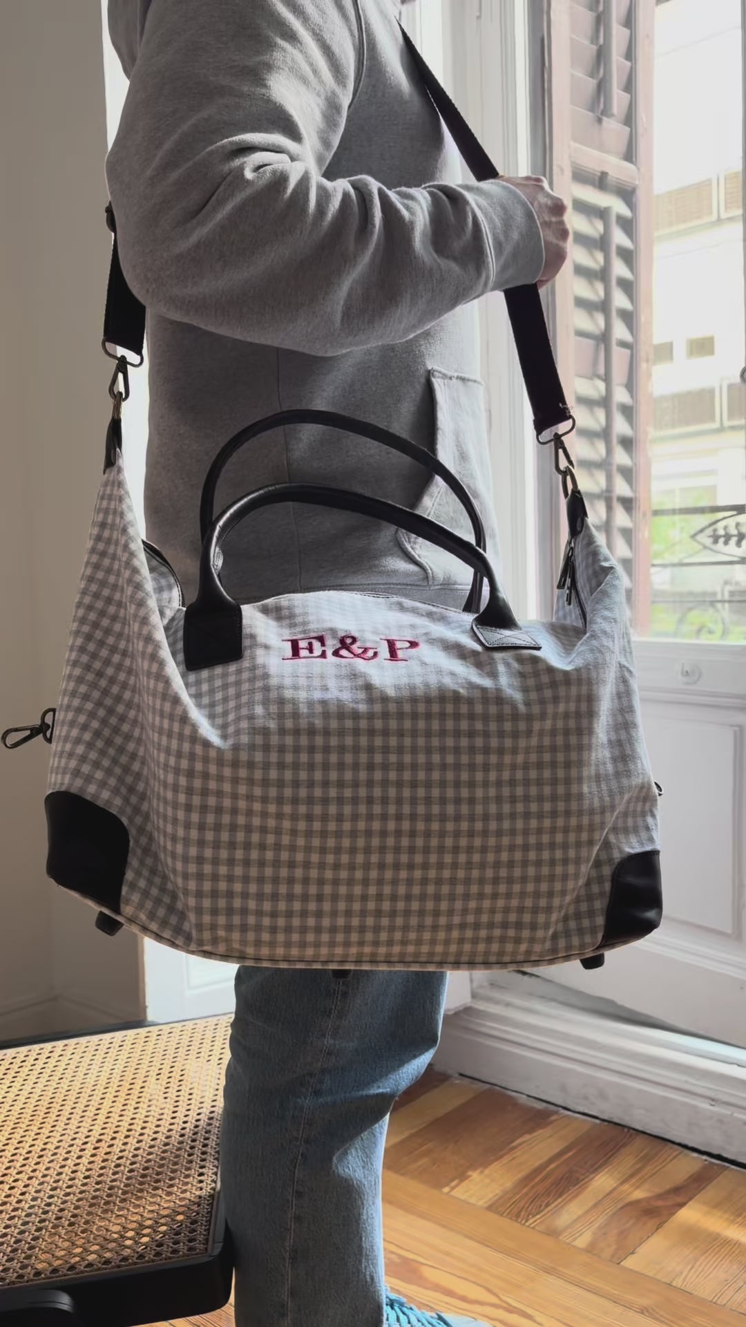 BOLSO VIAJE WEEKENDER VICHY GRIS (asas piel)