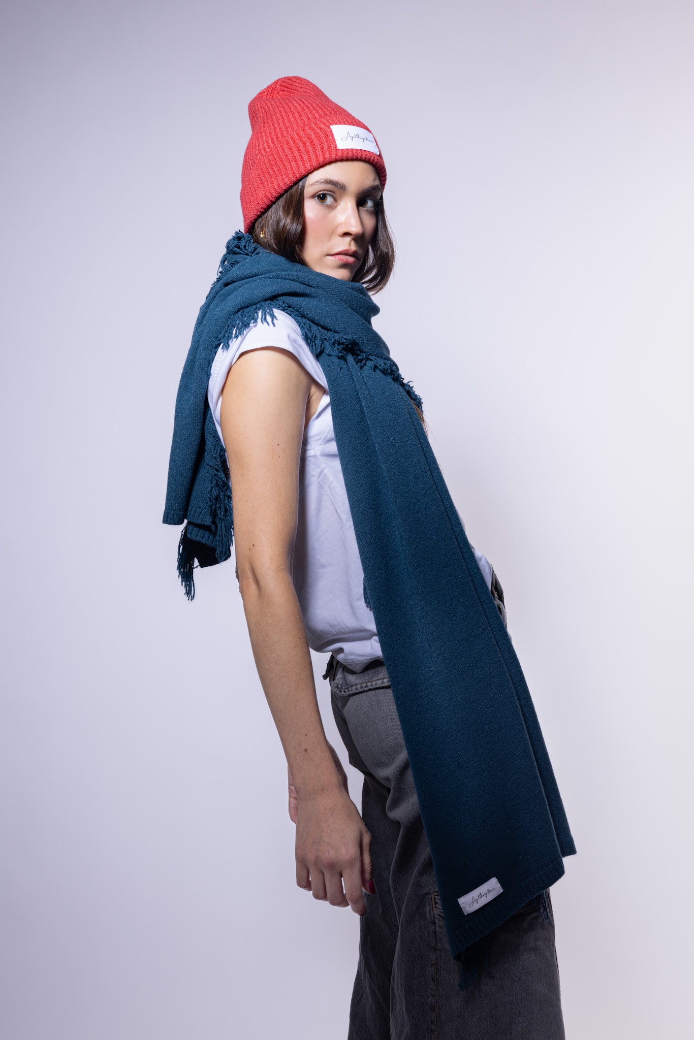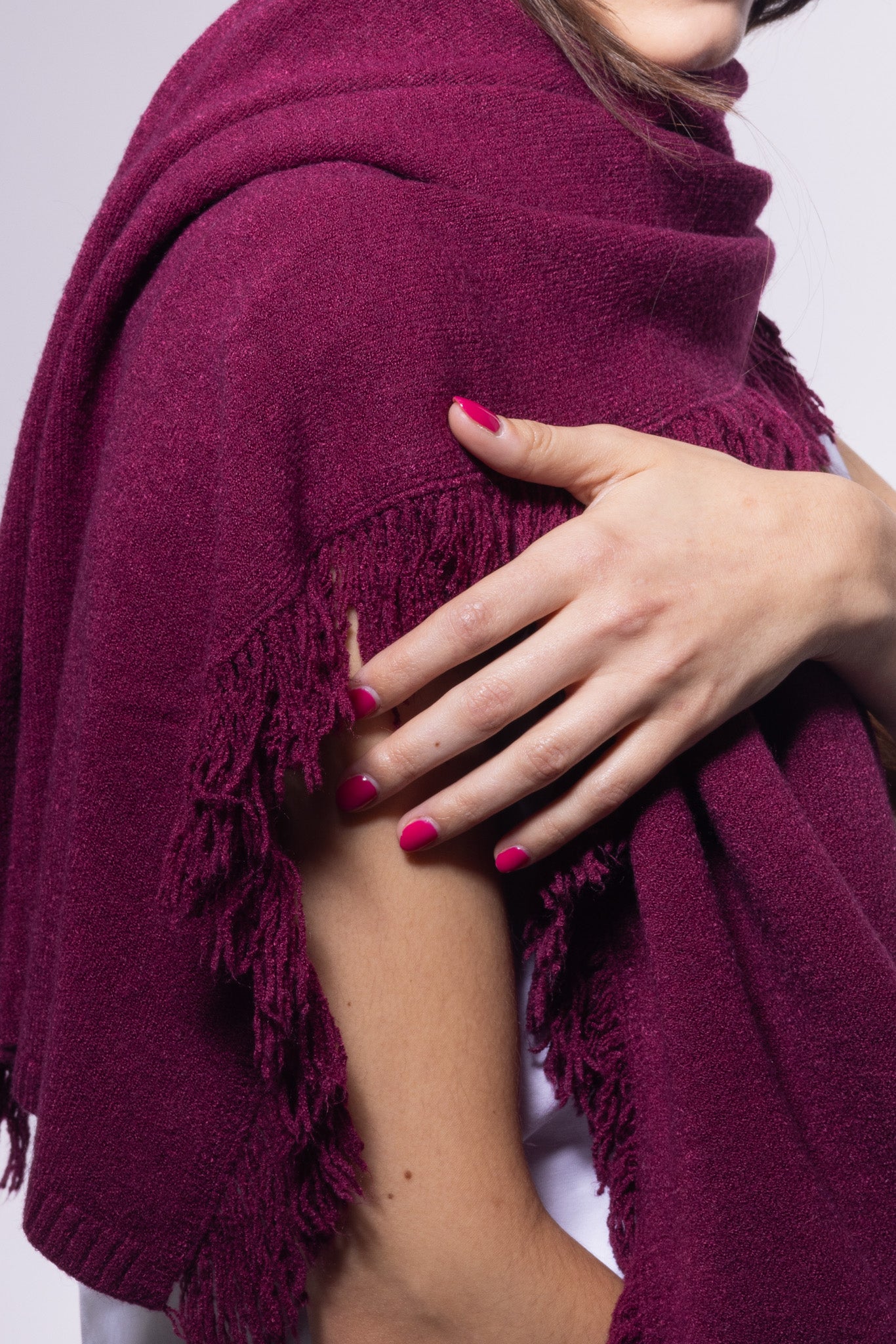 Bufanda de punto con flecos.