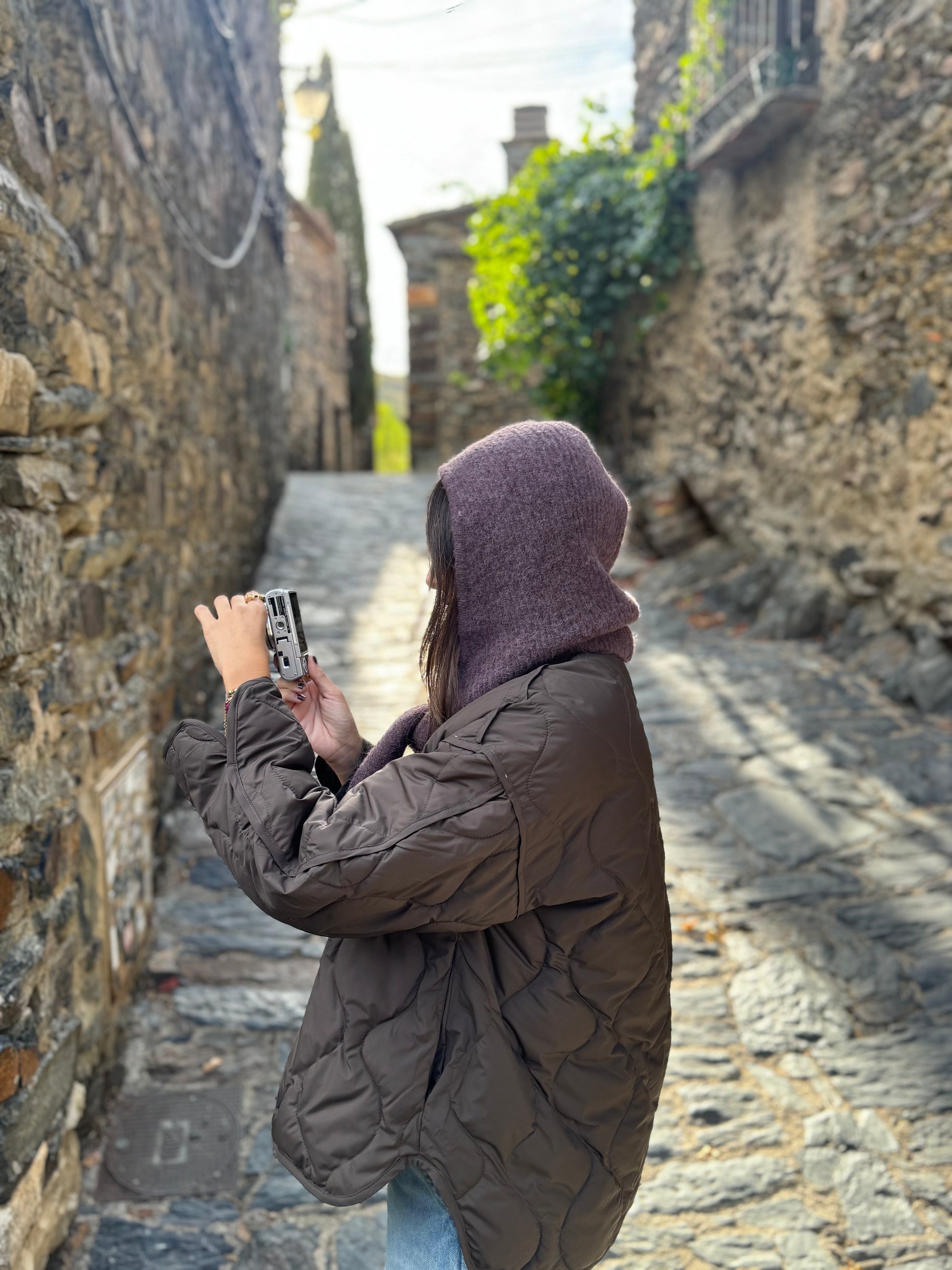 La capucha de punto marrón es un básico elegante y atemporal. Su tono tierra aporta calidez visual y combina fácilmente con cualquier prenda de invierno, desde abrigos clásicos hasta chaquetas más casual.