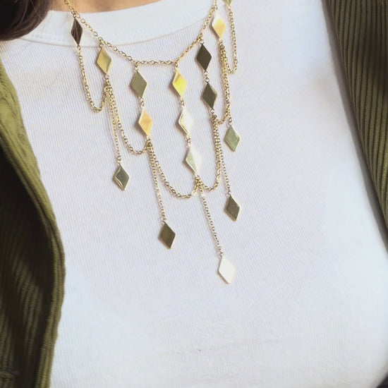 El collar Rosetta está fabricado en acero inoxidable y presenta un diseño minimalista con rombos.